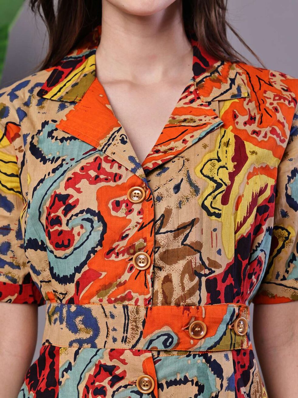Be the first to review “Women’s Bohemian Chic Multi-Color Paisley Print Cotton Collared Midi Dress”
